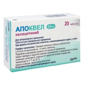 Апоквел 3,6 мг (20 таб) - при дерматитах различной этиологии, сопровождающихся зудом, у собак.