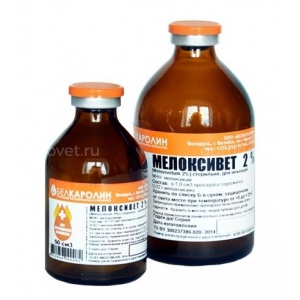 крупному и мелкому рогатому скоту - подкожно или внутримышечно в дозе 0,5 мг/кг мелоксикама (2,5 см3) на 100 кг массы животного